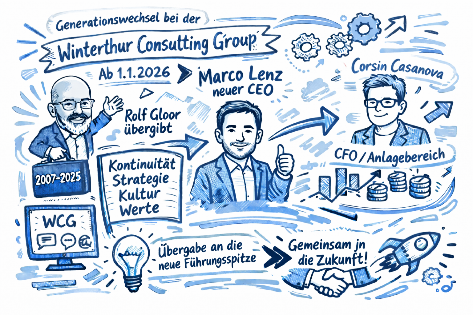 Per 1. Januar 2026 übergibt Rolf Gloor die Geschäftsführung der Winterthur Consulting Group an den bisherigen Finanzchef Marco Lenz. Corsin