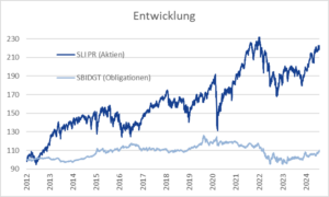 Aktien sind die renditestärkste liquide Anlageklasse und für einen langfristigen Vermögensaufbau unverzichtbar. Da aber, wie bereits oben beschrieben, die Aktienrenditen stärker schwanken als die Renditen von Obligationen, wird die Aktienquote in vielen Portfolios oft zu tief gehalten. Man begrenzt dadurch nicht nur die Risiken, sondern auch die Chancen. Denn bei steigenden Aktienmärkten (und das tun sie im Trend seit über 10 Jahren) werden wertvolle Renditebeiträge vergeben.